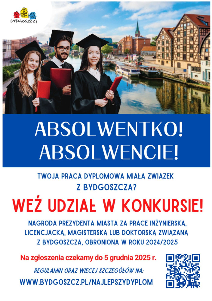 Ogłasza konkurs pn. Nagroda Prezydenta Miasta za związane z Bydgoszczą prace magisterskie i doktorskie,
