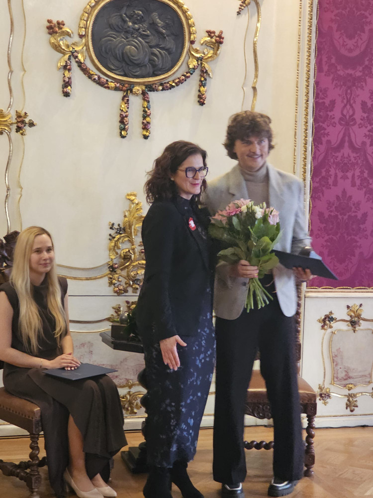 Z przyjemnością informujemy, że mgr Jurand Sobiecki z Instytutu Psychologii Uniwersytetu Gdańskiego został laureatem Nagrody Miasta Gdańska dla Młodych Naukowców im. Jana Uphagena za 2024 rok w kategorii nauk humanistycznych i społecznych. Uroczystość wręczenia nagrody odbyła się 7 listopada 2025 r. w Domu Uphagena – miejscu szczególnie symbolicznym dla historii i tradycji gdańskiej nauki i kultury. Jurand Sobiecki jest psychologiem i biologiem medycznym, doktorantem i asystentem w Zakładzie Neuropsychologii Instytutu Psychologii Uniwersytetu Gdańskiego. Należy do grona wyjątkowych młodych naukowców, którzy w swojej pracy łączą pasję poznawania człowieka z odwagą przekraczania granic między dyscyplinami. Jego badania sytuują się na styku psychologii, biologii i medycyny, a ich celem jest pogłębienie zrozumienia, w jaki sposób czynniki biologiczne, społeczne i kulturowe kształtują nasze emocje, relacje i dobrostan. Serdecznie gratulujemy Laureatowi i życzymy dalszych sukcesów naukowych oraz inspiracji w odkrywaniu złożonej natury człowieka.