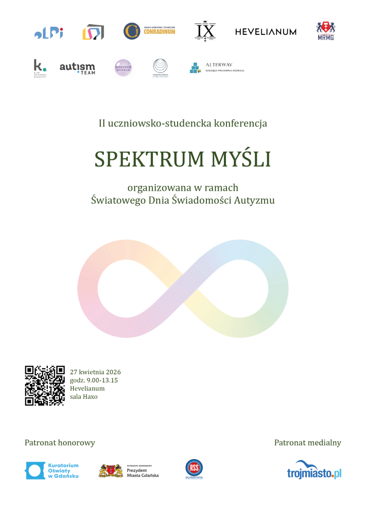 Serdecznie zapraszamy na II uczniowsko-studencką konferencję "Spektrum Myśli", która odbędzie się w Hevelianum w Gdańsku.